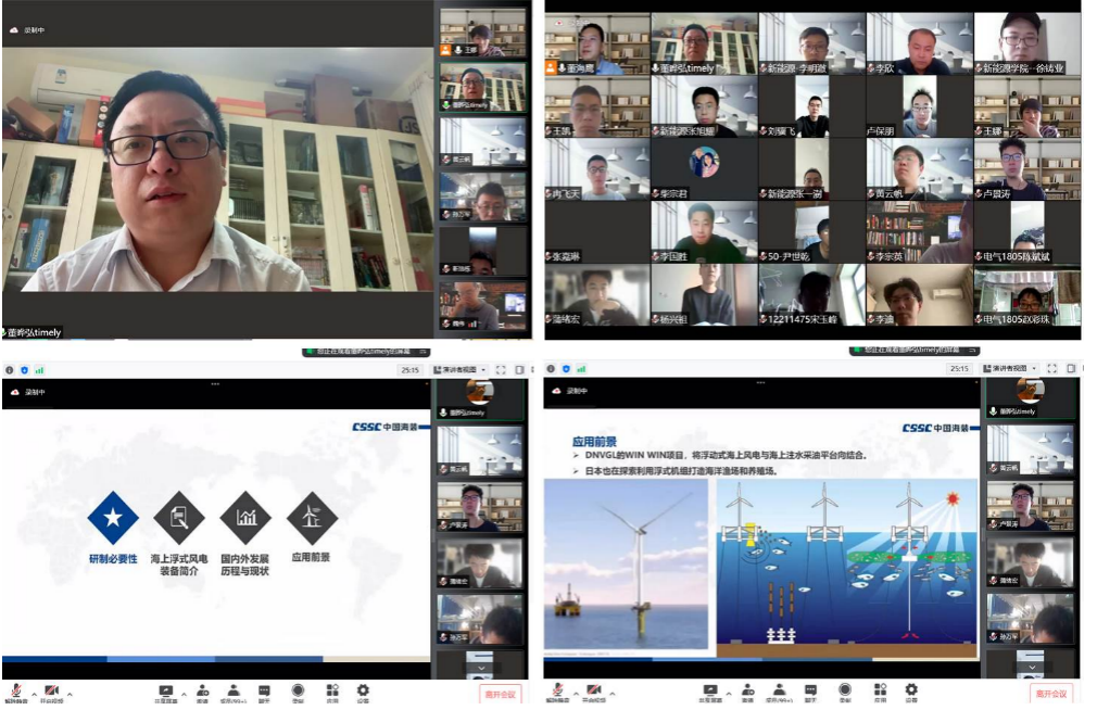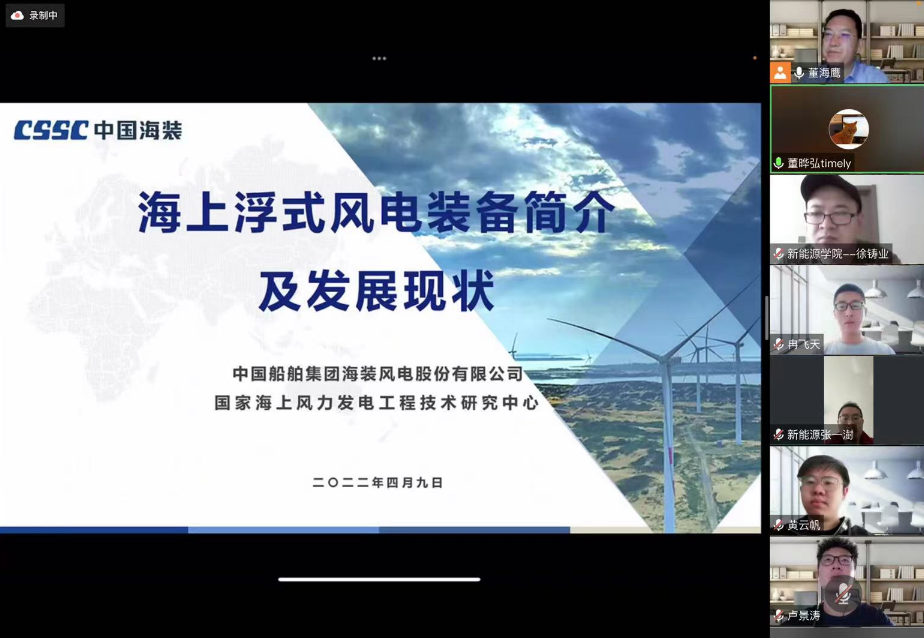 4月9日上午,新能源与动力工程学院邀请中国船舶集团海装风电股份有限公司学科带头人、国家海上风力发电工程技术研究中心技术负责人、研究员级高级工程师董晔弘博士为我校师生做了题为《海上浮式风电装备简介及发展现状》的学术报告。报告通过腾讯会议平台线上开展,学校相关专业师生近300人参加了本次学术报告。