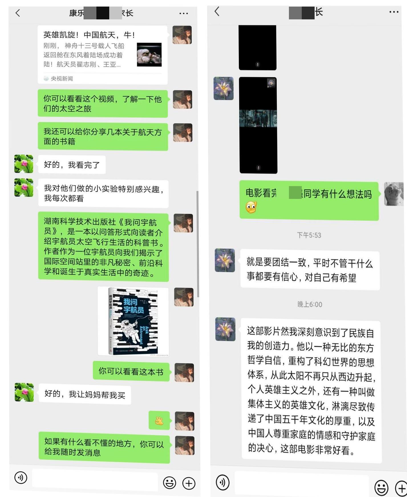 志愿者们以航天题材的电影与科普视频为切入点,通过线上交流的,向结对的留守儿童普及航天知识,指导他们认识中国航天的发展历程。用视频、电话等方式帮助孩子们完成关于他们心中航天梦的手抄报,更加深刻的了解中国科技、大国重器;与结对儿童分享相关书籍,用最专业的航天知识,最真实的航天故事,最恢宏的航天科幻,带着孩子们开启宇宙探索之路。