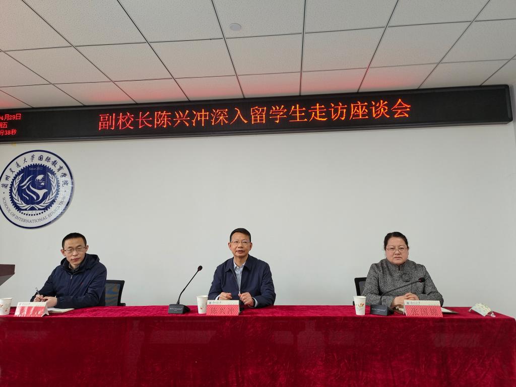 4月29日下午,副校长陈兴冲深入国际教育学院与在校留学生交流座谈,调研国际教育学院留学生管理及疫情防控工作。国际教育学院负责人及学院教师参加了座谈会。