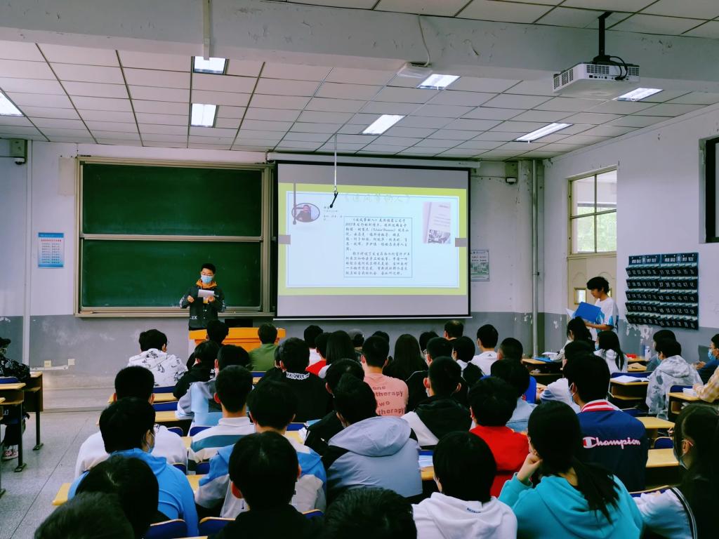 “童年是甜的,有很多美好的回忆,一起玩弹弓,摘柿子。童年是难以忘却的却萦绕于心的,可是阿米尔的懦弱彻彻底底地撕裂了这一切美好的生活。他的懦弱锁上了哈桑的心窗,虽然悲惨难过但哈桑始终惦记着阿米尔,可是阿米尔无法打开内心的枷锁去面对他……”2022年4月22日世界读书日的前一天,计算机2103班的郭良同学在讲台上和同学分享他阅读《追风筝的人》的心得体会,这是经典阅读课还是大学语文课?都不是,是马克思主义学院杜华伟老师的《中国近现代史纲要》课的经典阅读分享环节。
