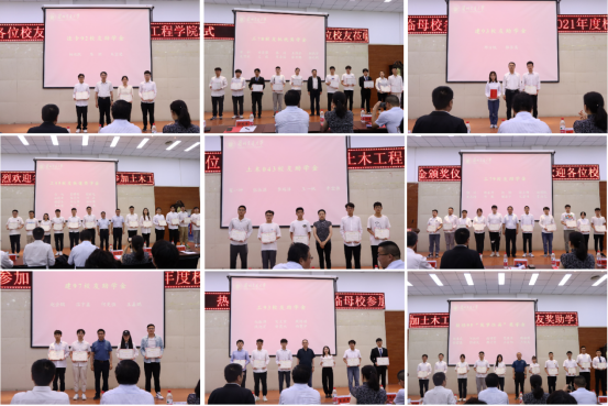 5月31日下午,土木工程学院在三号实验楼5楼多功能厅举行2021年度校友奖助学金颁奖仪式。此次共颁发“工78校友轨枕奖学金”“工79校友助学金”“建93校友助学金”等9项奖助学金,62名同学共计获得12.8万元的资助。相关奖助学金的校友代表、学校校友基金会办公室、党委学生工作部以及学院相关负责人参加了颁奖仪式。