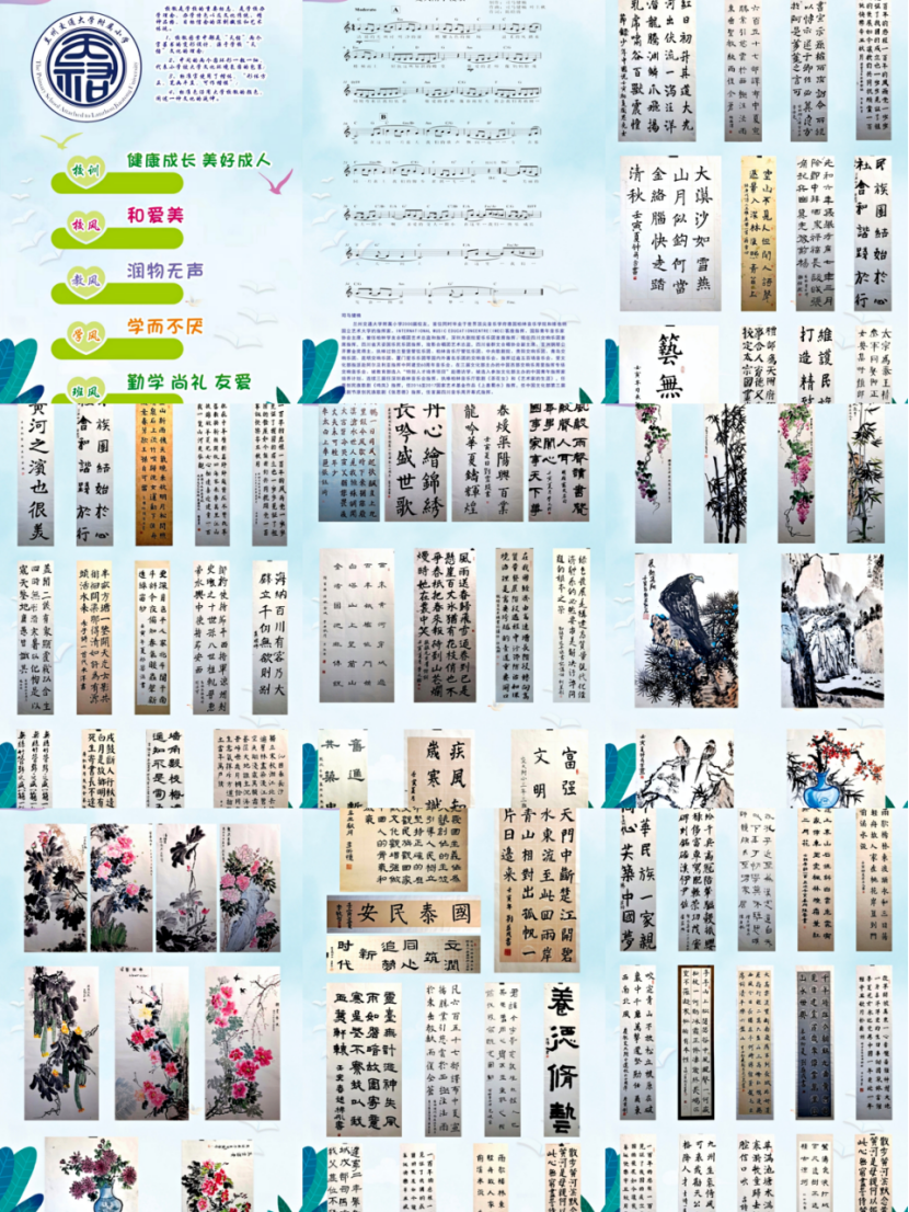 在“六·一”儿童节当日附小还举办了书香校园师生书画展览,积极展现青少年朝气蓬勃、立志成才的精神风貌,营造良好的文化艺术教育氛围,努力推动校园文化建设和学校艺术教育的高质量发展。