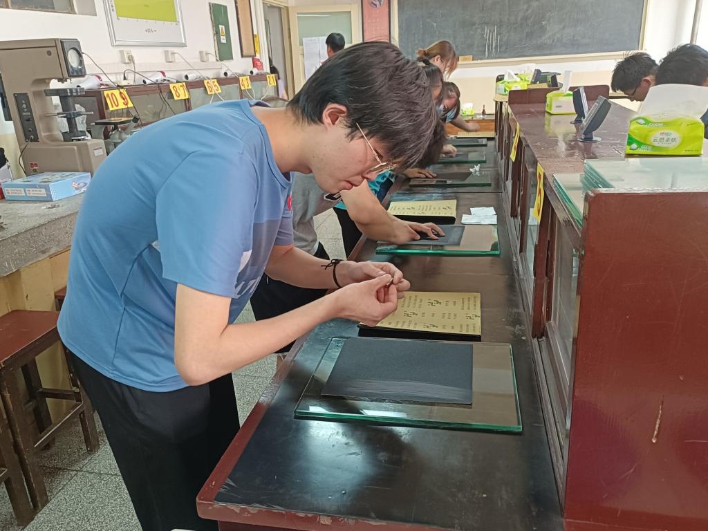 在赛前的一个多月,学院对参赛选手分批组织了线上线下相结合的金相制样培训。比赛中,参赛选手分为六组,在40分钟内完成磨制、抛光、腐蚀及显微镜观察等操作,评委分别从金相图像质量、样品表面质量、操作规范等三个方面对选手的金相试样进行了细致的量化评价,最终评选出一等奖3人、二等奖6人、三等奖9人。