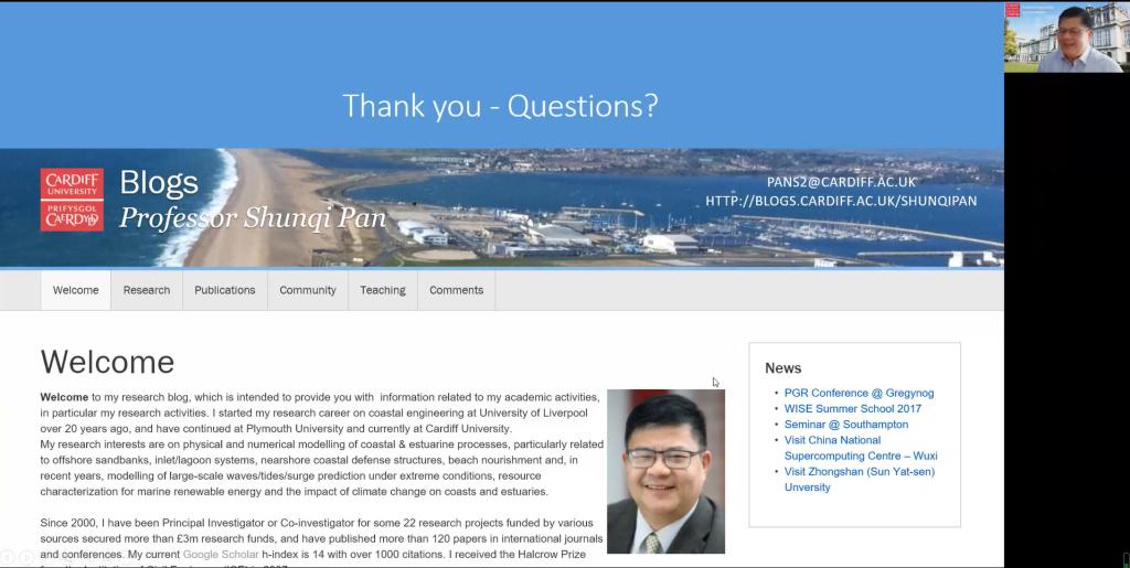 6月20日下午,应“海智计划”兰州交通大学工作站和土木工程学院联合邀请,英国卡迪夫大学潘顺琪教授以线上视频会议方式作了题为“中国近海台风影响下的极端海浪和增水的研究”的学术报告。此次讲座为我校“天佑海智云讲堂”系列活动,来自土木工程学院的师生参加了此次线上学术报告会。
