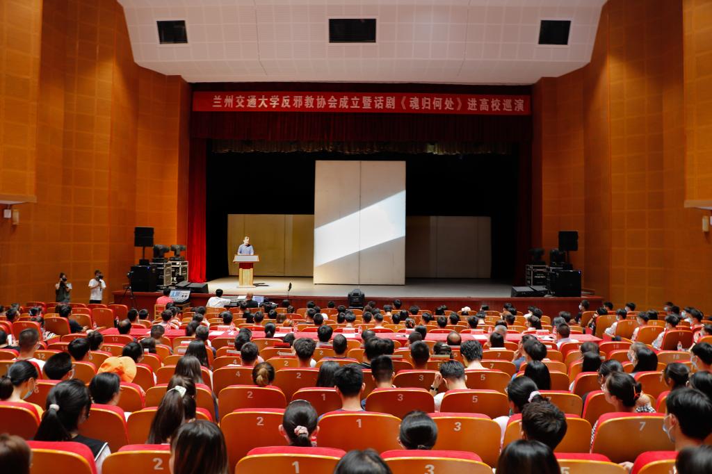 6月27日晚,我校在交大礼堂举行反邪教协会成立大会,特邀甘肃省话剧院反邪教话剧《魂归何处》剧组来我校巡演。反邪教协会理事会成员单位党委宣传部、党委教师工作部、党委学生工作部、党委研究生工作部、校团委、离退休教职工服务中心、党委保卫工作部等职能部门主要负责人,协会理事、会员及部分师生代表共计800余人参加活动。副校长、反邪教协会理事会理事长马军党主持活动。