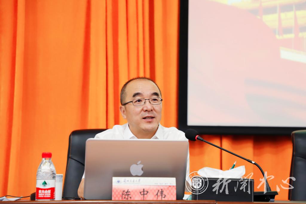 6月27日下午,学校党委邀请省纪委监委第八监督检查室主任陈中伟作题为《以伟大自我革命引领伟大社会革命推动纪检监察工作高质量发展》的专题报告。校党委书记杨子江主持报告会,全体校领导、副处级及以上干部和机关科级干部聆听了报告。