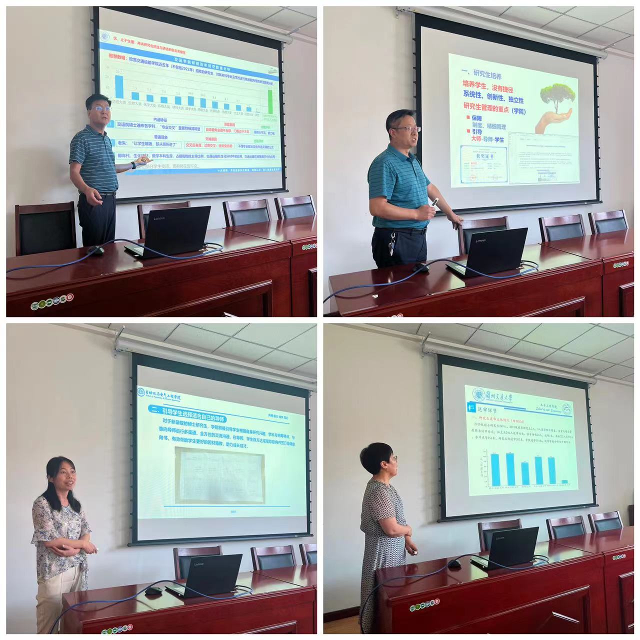 党委研究生工作部和研究生院主要负责同志介绍了目前我校研究生教育管理工作现状,同时,要求各培养单位在今后工作中聚焦思想政治教育、导师队伍建设、招生就业提质、育人机制完善、培养质量提升等方面,全面落实全国研究生教育工作会议精神,进一步推动我校新时代研究生教育改革质量提升行动。