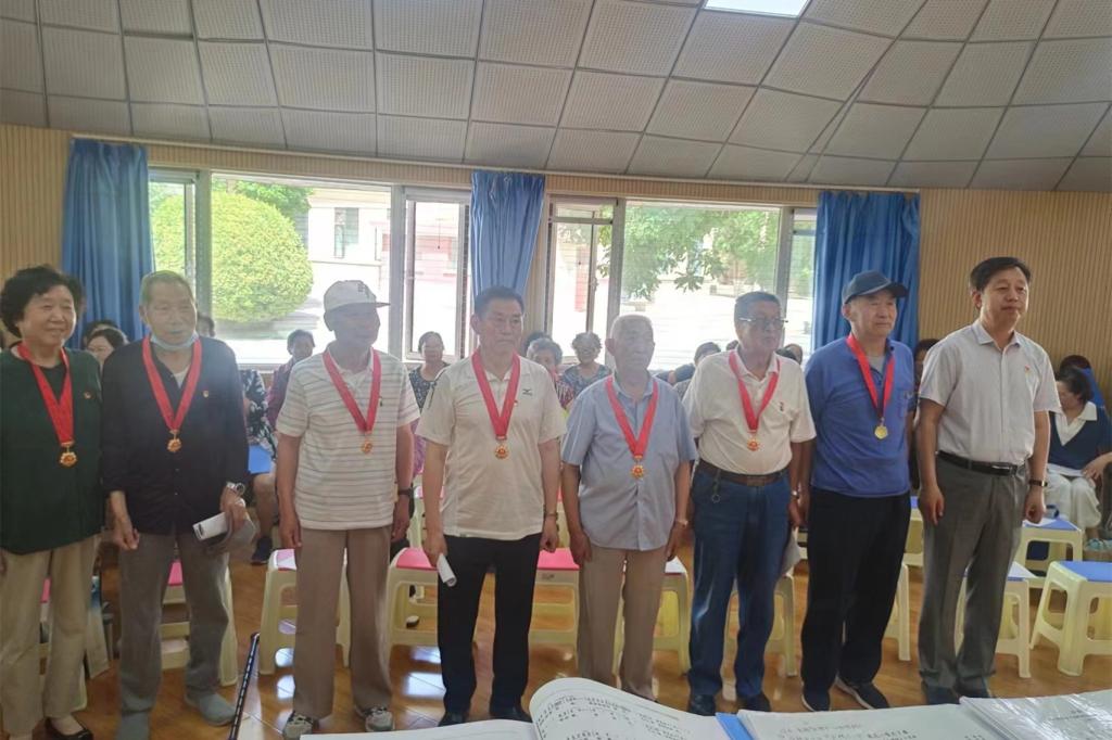 之后,出席颁发仪式的校领导、荣获“光荣在党50年”纪念章的党员同志与学校老年大学的60余位学员一起合唱了《没有共产党就没有新中国》《唱支山歌给党听》和《让我们荡起双桨》等歌曲。颁发仪式在悠扬的歌声中落下了帷幕。