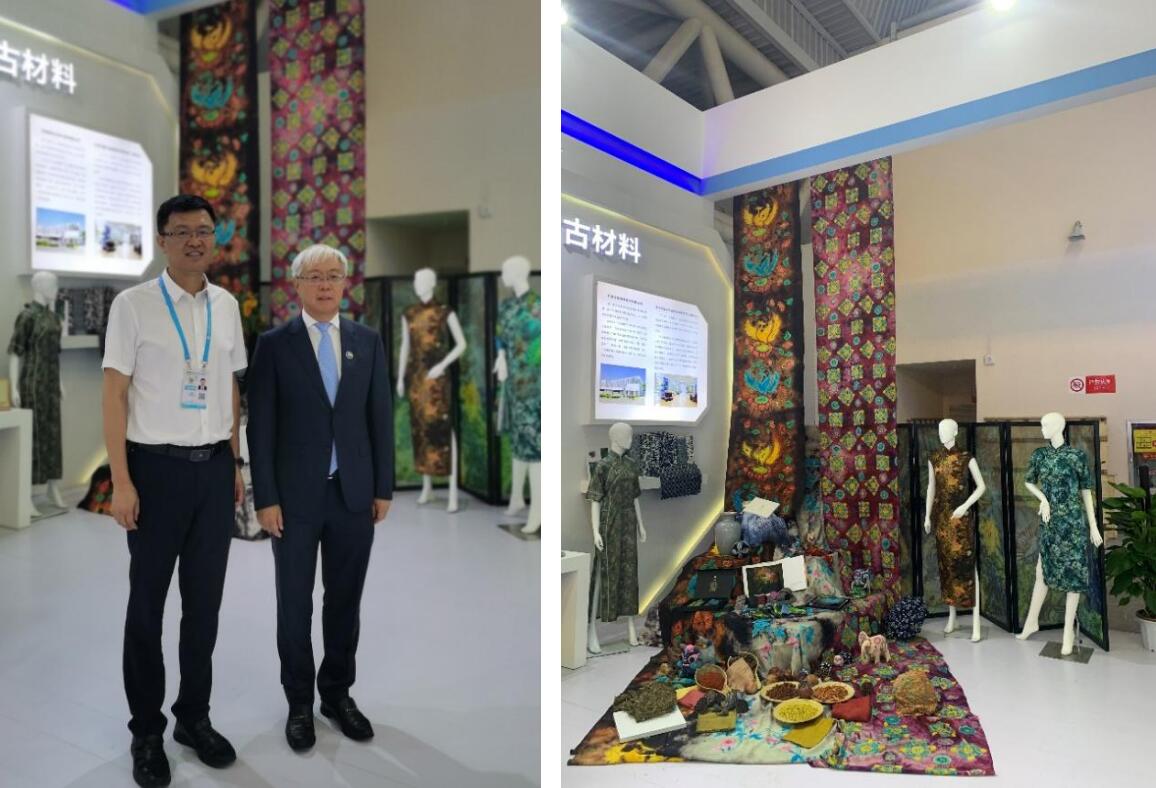 本届“兰洽会”聚焦共建“一带一路”和绿色产业发展,设置了新能源、新材料、装备制造等7个专业展馆。我校染缬艺术研究所天然植物染料研究与利用成果受兰州市邀请,作为兰州馆的组成部分之一亮相此次盛会。