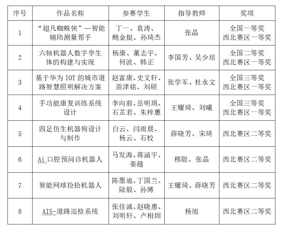 近日, 2022全国大学生物联网设计竞赛(华为杯)全国总决赛在湖南大学落下帷幕。因疫情防控要求,决赛采用学生线上答辩、竞赛评委现场评审的方式进行。经过网上视频答辩评审、作品演示、六强角逐等竞赛环节,我校学子与来自上海交通大学、浙江大学、南京大学、国防科技大学等560余所高校的1417支优秀队伍同台角逐,在全国总决赛中获得一等奖1项,二等奖1项,三等奖2项的优异成绩。另外,我校有8支队伍进入西北赛区决赛,获一等奖4项,二等奖4项。