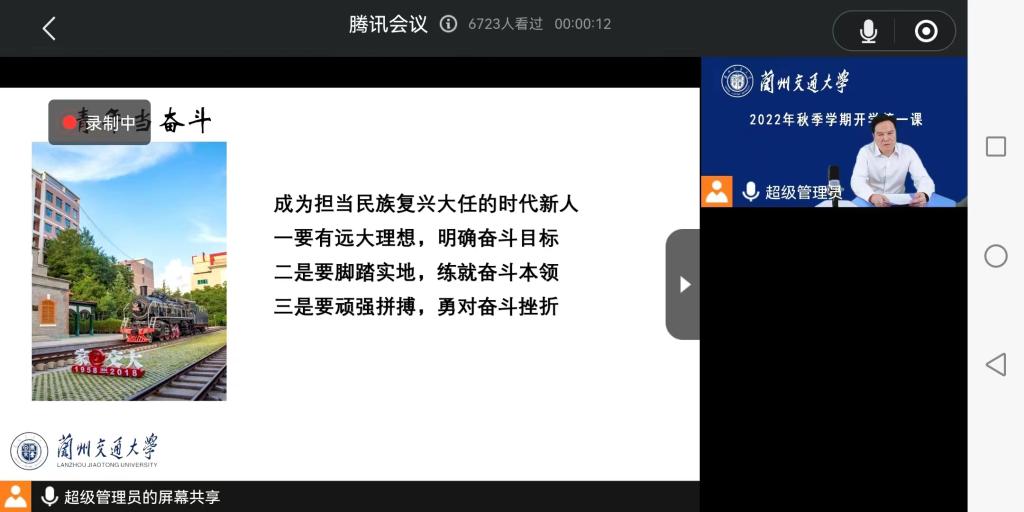 9月7日下午,兰州交通大学党委书记狄生奎以“奋斗正青春,一起向未来”为主题,在线上为全体2022级新生讲授了开学第一堂思政课。