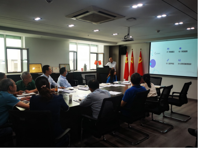 随后,学院负责人解读了教育部最近出台的《教育部关于推进新时代普通高校学历继续教育改革的实施意见》,并对下半年工作进行了汇报。学院班子成员及相关科室负责人结合自身工作,对照实施意见进行了交流研讨。