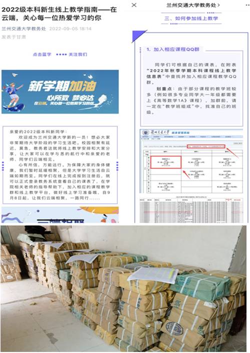 关爱新生,全力保障线上教学顺利开展。为使大一新生尽快融入学校教学环节,教务处精心制作并及时发布“2022级本科新生线上教学指南”,通过云端,关心着每一位热爱学习的新同学。同时联合各教学单位,精准推送每门课程线上教学群,协同学院相关老师指导学生加入相应线上教学平台,做好线上开课的充分准备。学校第一时间启动教材免费邮寄工作,任课教师同步做好电子教学资料的推送和分享,全力保障线上的顺利开展。