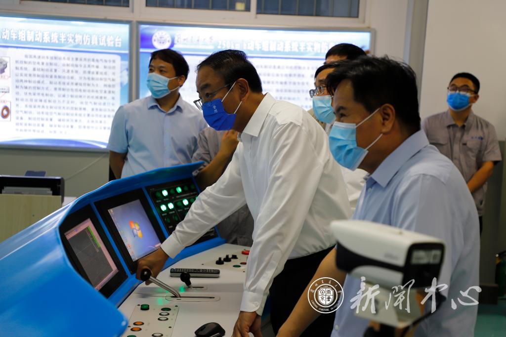 张世珍一行先后调研了我校运输调度与智慧交通学科实验室、高原交通信息工程及控制学科实验室、轨道交通运输装备学科实验室。在听取了各实验室整体情况汇报后,张世珍指出,“双一流”建设是战略性部署、长期性任务、突破性工程,要切实提高站位,深化认识,积极抢抓我省设立国家新时代振兴中西部高等教育改革先行区的政策机遇,进一步转变观念、加力推进,各尽其责、协调推动,锚定目标、务求进展,为甘肃高等教育高质量发展作出应有贡献。他强调,要坚持主辅结合、团队融合、内外合作的原则,“盆景式培育、花朵式呵护”,聚焦重点、差异化推进,围绕年度建设目标和重点任务,加大人才引育力度,加快平台建设,完善激励引导机制,理清方向、明晰任务、拿出措施,力争做到时时有进步、年年有进展。