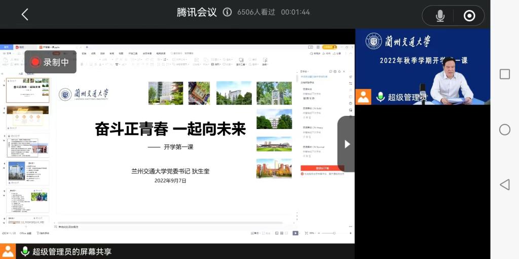 请您支持,让我们同心凝聚共克时艰的力量。大学是孩子人生的新坐标、新起点,更是新征程。孩子的成人、成长、成才,离不开孩子自身以及家庭、学校、社会的共同教育。“让您的孩子能够尽快适应大学生活”是你我共同的心愿。9月5日至6日,学校推出了“立德树人之我和我的大学”入学教育云端直播活动,针对广大新生及家长们关心关注的人才培养、学习生活、专业发展、日常管理、校纪校规、奖助贷补、校园文化等问题,通过线上直播讲解,帮助大家了解学校,使新生尽快适应、融入大学生活。9月7日,学校党委书记狄生奎以“奋斗正青春,一起向未来”为主题,在线上为全体2022级新生讲授了开学第一堂思政课,向新生们简单介绍了学校的基本情况和办学历史。同时,教导学生要尽快转变角色,适应新的学习、生活和管理方式。我们郑重承诺:以父母之心育人,孩子们来到兰州交通大学,我们定将全程守护,培养他(她)成为一个身心健康,学业有成的有为青年。