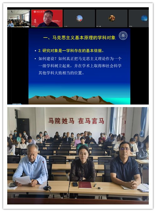 9月22日下午,马克思主义学院“学习新思想迎接二十大”马克思主义理论名师大家讲坛第二场学术报告举行。北京大学马克思主义学院教授、博士生导师,北京大学习近平新时代中国特色社会主义思想研究院常务副院长孙熙国应邀作题为“马克思主义基本原理的学科对象与理论体系”的学术报告。我校马克思主义学院全体师生、校内有关干部和师生(2022级博士生)、兄弟院校思政课教师共计360多人聆听了报告,马克思主义学院院长蔡中宏主持报告会。