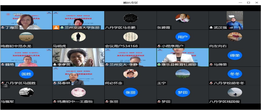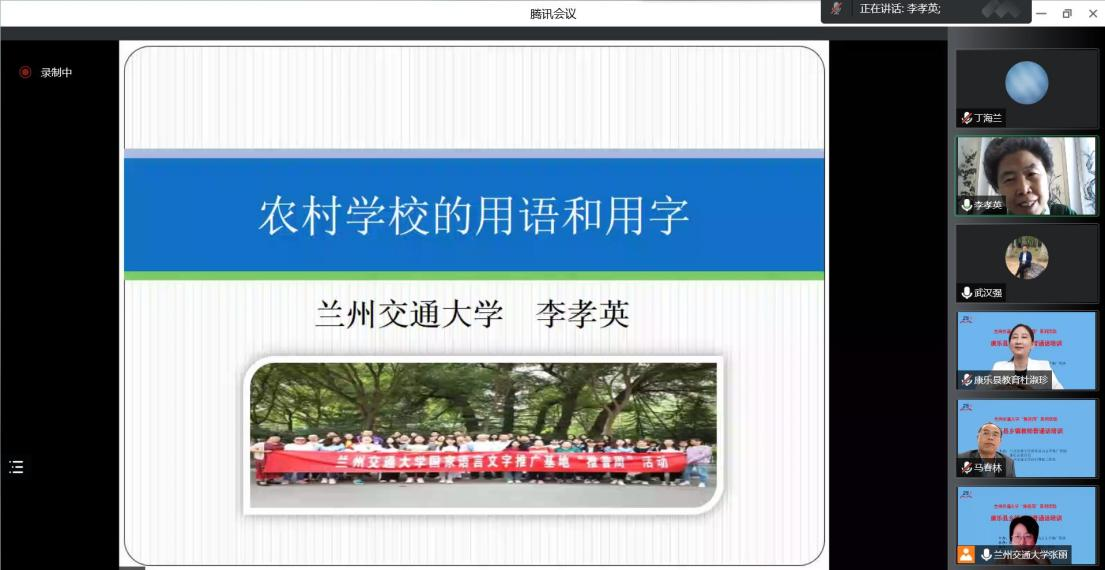在喜迎党的二十大胜利召开之际,我们迎来了第25届全国推广普通话宣传周。根据《教育部等九部门关于开展第25届全国推广普通话宣传周活动的通知》(教语用函〔2022〕1号)和省语委的文件精神,9月24日上午,兰州交通大学国家语言文字推广基地为康乐县部分乡镇教师举办了推普专题培训活动。此次培训以“推广普通话,喜迎二十大”为主题,旨在提高当地乡镇教师的国家通用语言文字应用能力。