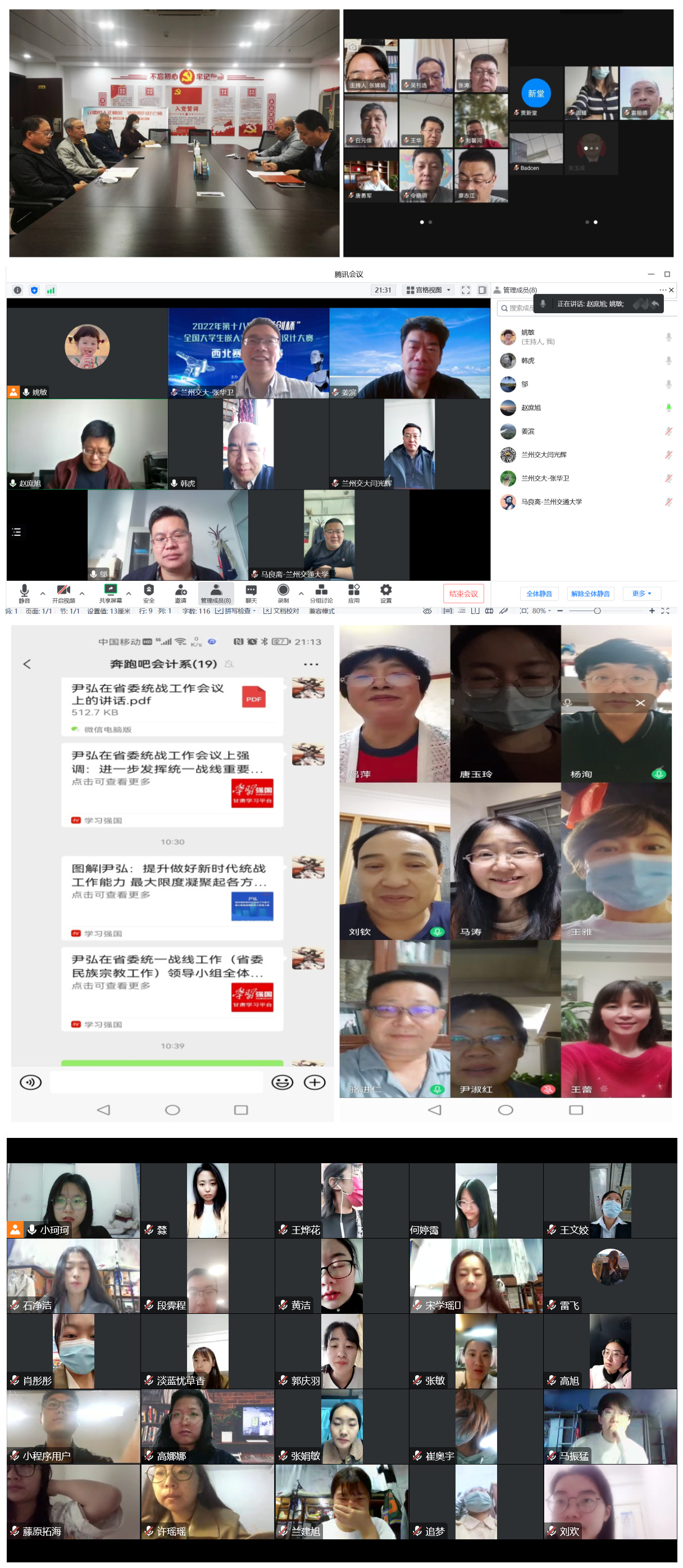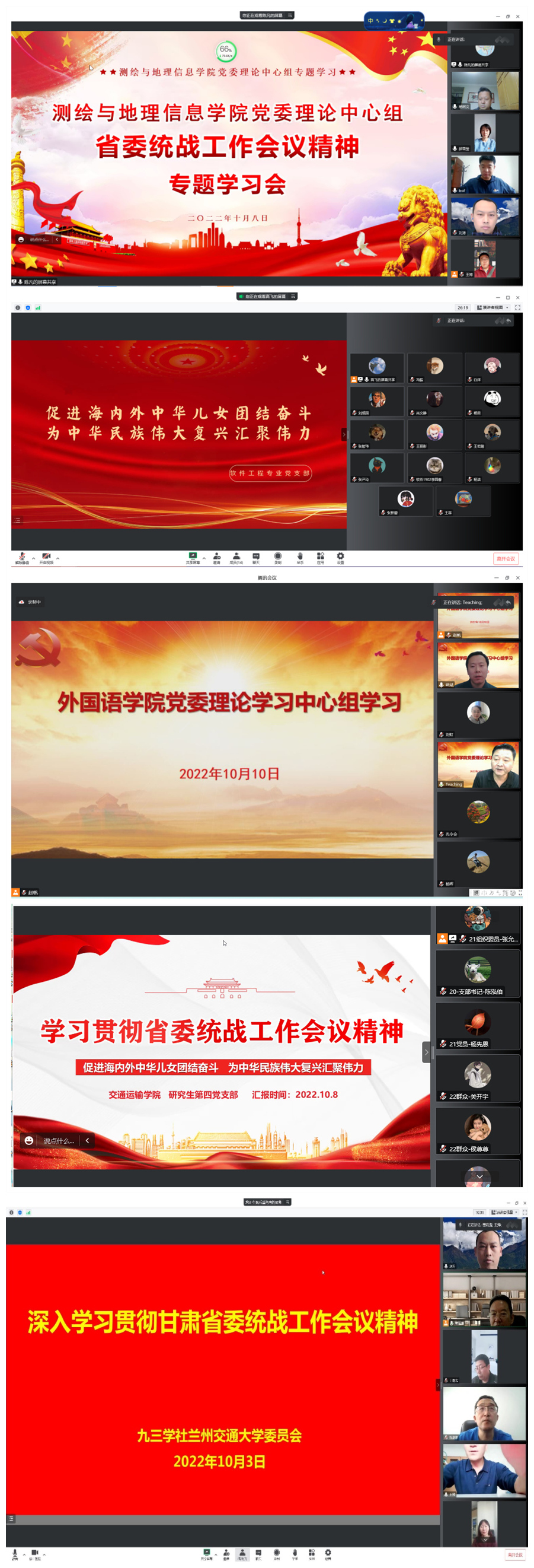 九三学社等民主党派基层组织、统战团体通过线上线下专题学习、微信群信息收阅等方式传达学习省委统战工作会议精神。大家一致认为,省委统战工作会议是在党的二十大召开前夕、统一战线政策提出100周年之际,学习贯彻中央统战工作会议精神的关键时期召开的一次意义重大的会议。广大统战成员要完整准确全面理解习近平总书记关于做好新时代党的统一战线工作的重要思想,牢牢把握新时代爱国统一战线的历史方位和重要使命,围绕中心,服务大局,为建设幸福美好新甘肃、为把学校建成特色鲜明的高水平大学贡献力量和智慧。