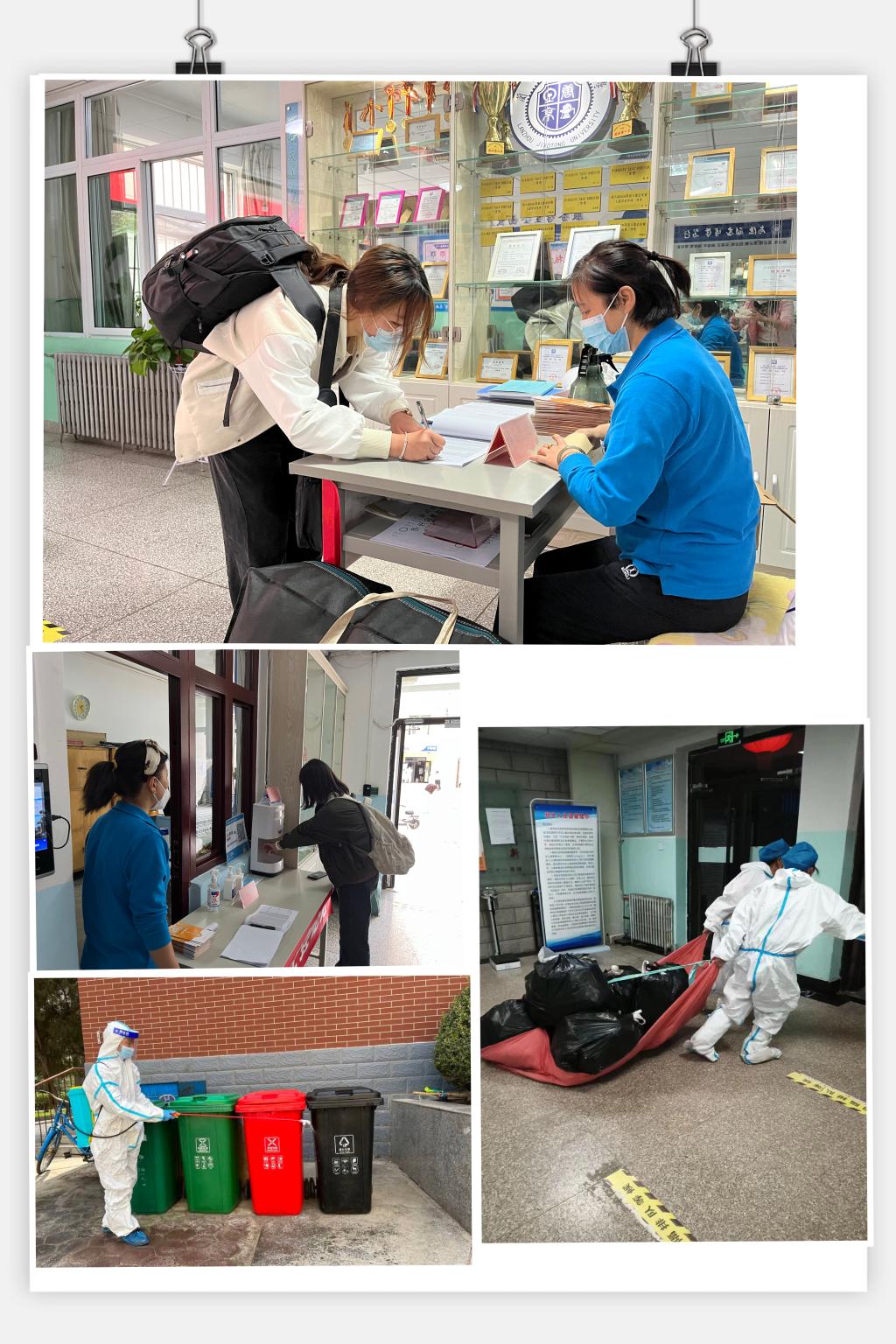 做好公寓服务保障,筑牢疫情防控安全防线。新冠肺炎疫情突发后,中心第一时间成立疫情防控工作小组,落实工作责任,强化工作措施,筑牢公寓防疫防线,在学校疫情防控工作的统一部署下,不断完善疫情安全管理各项规章制度。中心先后有100余名员工多次入住校园,坚守“值班员—管理员—中心工作小组”的三级值班制度;制作封闭管理期间学生进出公寓“一舍一证”;建立非公寓人员进出台账和疫情防控值班日志台账。学生公寓作为校园防疫的重点区域,严格落实学生公寓公共区域卫生清洁、消杀通风及体温监测等各项措施,每日3次对宿舍走廊、楼梯、卫生间等公共区域进行全面消杀、通风,对同学们经常接触的门厅拉手、楼梯扶手等反复擦拭消毒。为了便捷同学们做好自我防护,还提供感应式手部消杀器、手部免洗消杀凝露以及供宿舍借用的标准配比消杀壶,确保消杀到位。疫情防控期间,公寓学生生活垃圾急剧增加,垃圾清运频次和数量也随之加大,公寓保洁员每天凌晨3点起床,对公寓各个角落多次进行消杀、清理、通风,坚决杜绝垃圾死角,兢兢业业坚守在疫情防控的第一线,使学生备受“妈妈般”的关心和爱护。已完成消杀通风15840余次,垃圾清运13420余次,清运垃圾2400余吨。筑牢学生住宿安全屏障,建立长效机制,为学生发展营造良好的公寓环境。