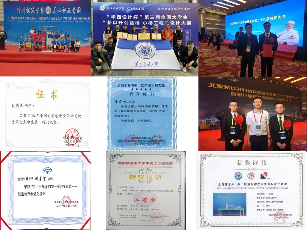 十年来,我们薪火相传,莘莘学子在这里成长。学院全面贯彻党的教育方针,以土木工程大类下的线、桥、隧、建分方向培养;土木工程基础上的铁道工程、道路桥梁与渡河工程专业特设交叉;土木工程依托下的工程管理和工程造价专业领域延伸;土木工程支撑下的水利水电工程和工程力学专业行业拓展,7个本科专业相互融合支撑,形成了独具特色的交通土建领域工程技术人才培养体系。土木工程、工程管理、铁道工程、道路桥梁与渡河工程4个专业获批国家一流本科专业建设点,水利水电工程、工程造价2个专业获批甘肃省一流本科专业建设点。工程管理专业获批甘肃省创新创业改革示范专业;土木工程、工程管理、水利水电工程3个专业高标准通过工程教育专业认证(评估和复评)。在全国学科评估中,土木工程学科位列全国20到30位,获批甘肃省优势学科建设点,目前正在参与实施学校“国家一流学科突破工程”。十年来,培养了近万名本科层次人才、3000余名硕士研究生、35名博士研究生,10名博士后出站。本科生一次考研录取率逐步稳定在18%左右,300余名本科生成功进入国内外高水平大学继续深造。40余名学生获全国大学生年度人物、“全国十佳未来水利之星”、全国土木工程专业优秀毕业生、全国工程管理专业优秀毕业生、茅以升铁道教育希望之星、“詹天佑优秀学生”、徐芝纶力学优秀学生等荣誉,百余人荣获省级三好学生和学生干部荣誉称号;获得省级优秀博士学位论文10余篇,省级优秀硕士学位论文40余篇。学生在全国大学生结构设计大赛、“全国大学生挑战杯”、“互联网+”等多项学科、创新创业竞赛中获奖千余项,学生获批申报发明和实用新型专利数百项。