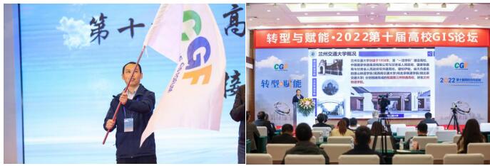论坛最后,作为2023第十一届全国高校GIS论坛承办单位代表,我校测地学院副院长刘涛接过会旗并作了主旨报告,分别从院校特色、学科专业、师资力量、办会资质等方面详细介绍了兰州交通大学,热情邀请大家明年相聚兰州。