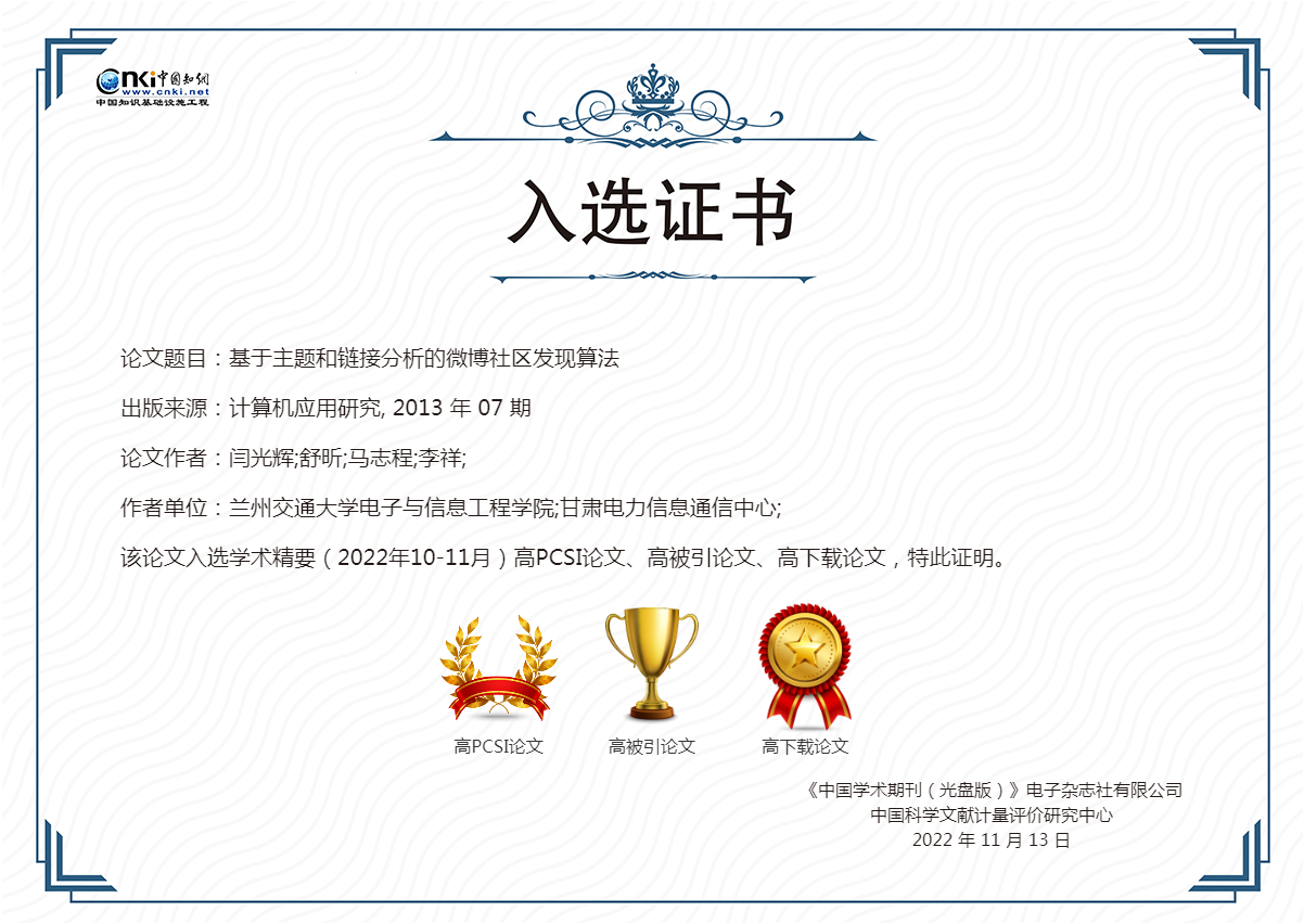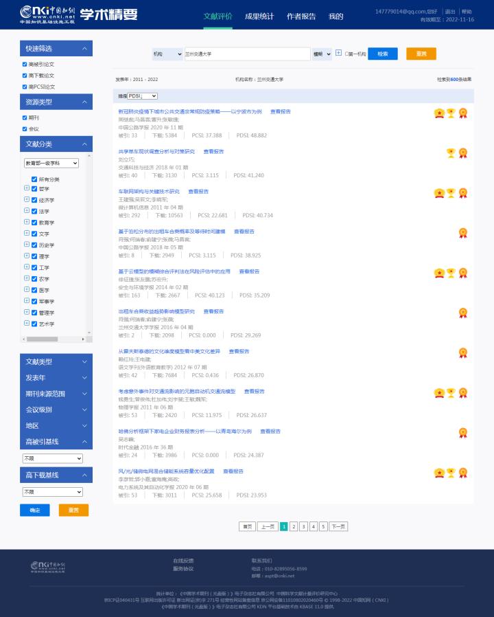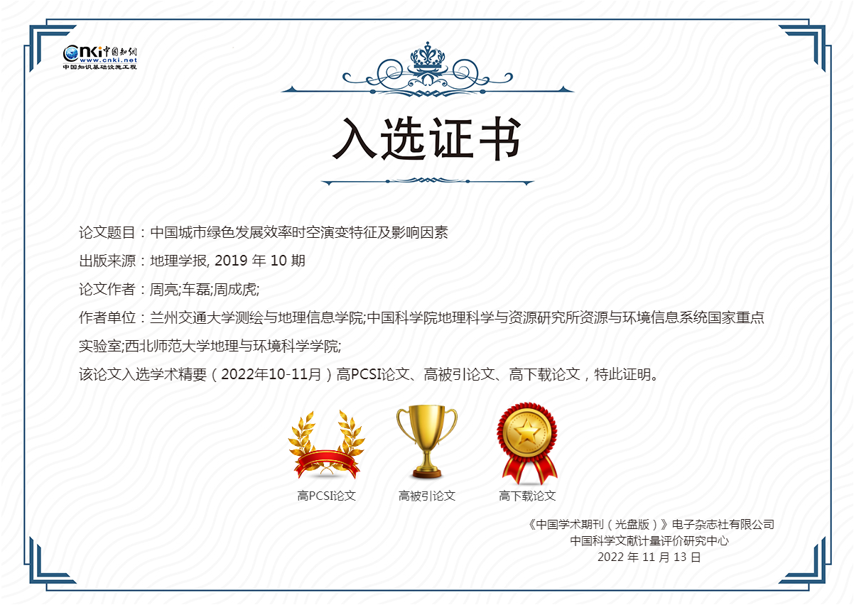 《学术精要数据库》基于中国知网资源总库遴选了各学科代表性论文,并为单篇代表作提供了定性与定量评价数据,支持作者成果认领,能够自动生成国内学者科研成果统计分析报告,为个人用户报奖评优提供佐证材料。另外,该数据库还提供基于单篇论文评价的科研成果统计功能,为机构的科研管理工作提供数据支撑。数据库还为入选的高影响力论文提供了收录证书,作者可通过知网《学术精要数据库》(https://xsjy.cnki.net/)查看论文并下载高影响力论文入选证书,并可导出单篇论文评价报告。