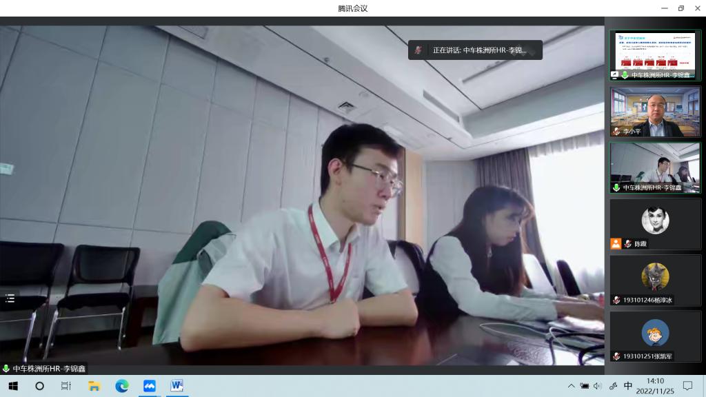 为了充分落实校党委常委会决策部署及狄生奎书记对学校就业工作的六点要求,自动化与电气工程学院积极挖掘市场就业资源,主动对接中车株洲电力机车研究所有限公司等企业开展线上“访企拓岗”工作,11月25日下午,株洲所人力资源中心曹玚经理、李锦鑫经理通过腾讯会议召开了自动化与电气工程学院线上专场招聘宣讲会。会议由学院党委主要负责人主持。