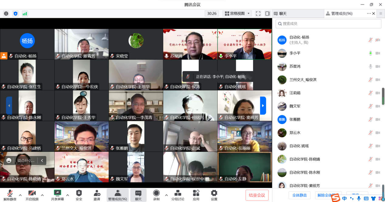 11月24日下午,自动化与电气工程学院党委积极响应学校党委号召,组织开展线上“党的二十大精神宣讲报告会”,学校党的二十大精神宣讲团成员、马克思主义学院苏星鸿教授应邀向全院教职工作宣讲,学院党委主要负责人主持会议。