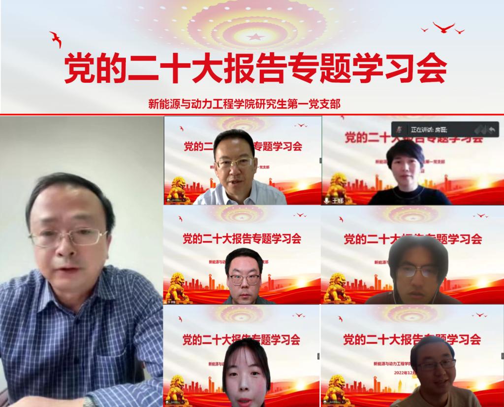 为进一步学习宣传贯彻党的二十大精神,12月8日,新能源学院研究生第一党支部线上召开学习党的二十大主题党日活动,专题学习了党的二十大报告中关于积极稳妥推进碳达峰碳中和的重要论述。校党委常委、副校长刘振奎出席巡学旁听,学院党政负责人及研究生第一党支部全体党员参加学习。