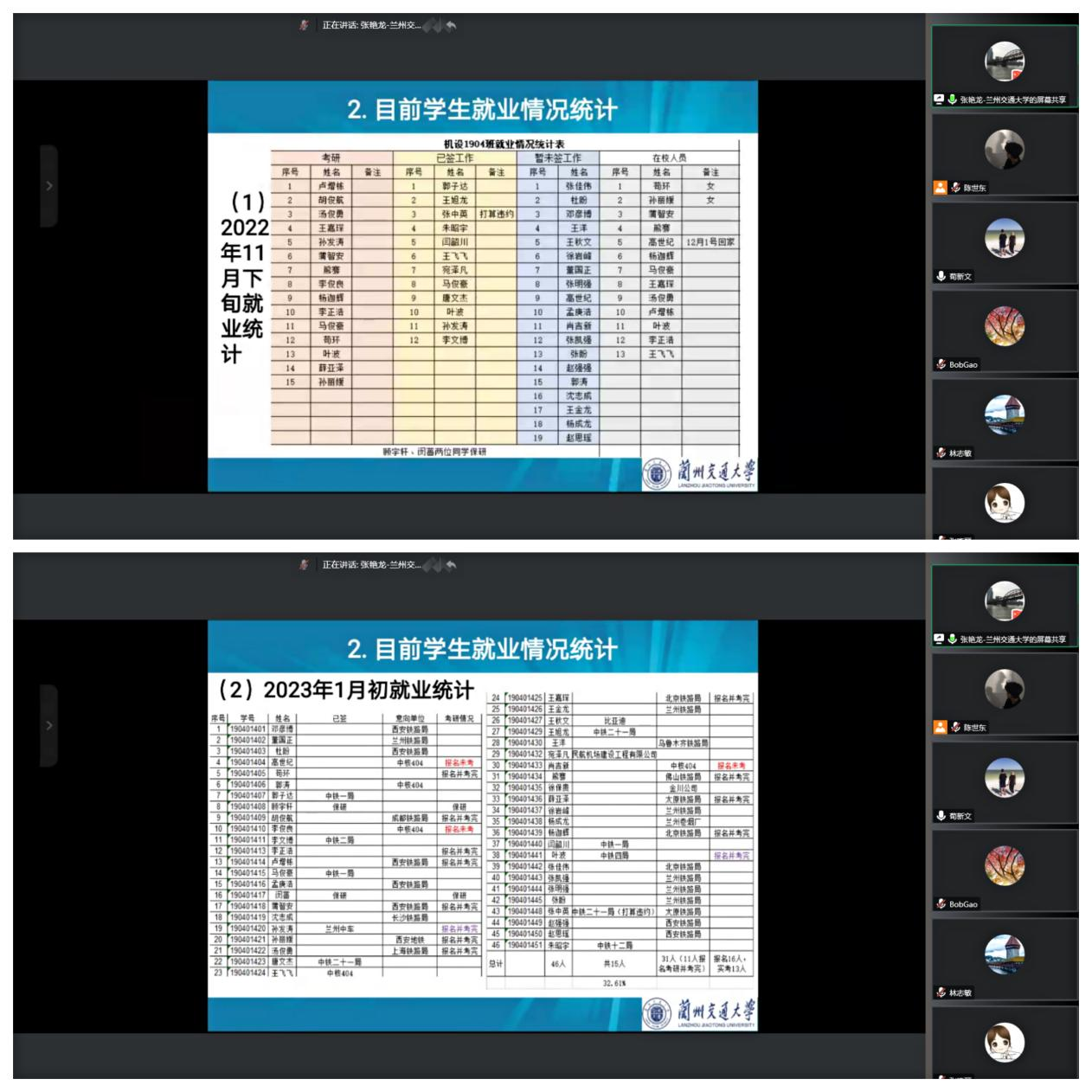 就业是最大的民生工程、民心工程、根基工程。机电工程学院高度重视就业工作,不断完善就业帮扶机制,统筹力量,压实责任,开创了“学院领导+科室主任+系主任+辅导员班主任+专业教师”五级联动的就业工作帮扶机制,建立了以“宣传员(学院负责就业工作人员)+信息员(帮扶人)+指导员(专业教师)+指挥员(班主任)+联络员(班干部)”五员协同的就业帮扶工作格局。为引导学院教师充分认识做好就业工作的重要性和紧迫性,不断提高2023届毕业生就业工作实效,1月4日上午,机电工程学院召开了2023届毕业生就业工作推进会,学院全体班子成员、各科室主任、系主任、毕业年级辅导员和班主任参加了此次线上会议。