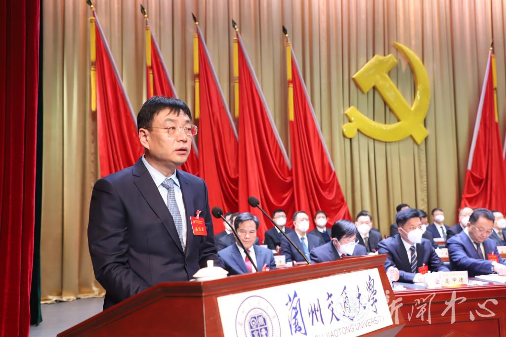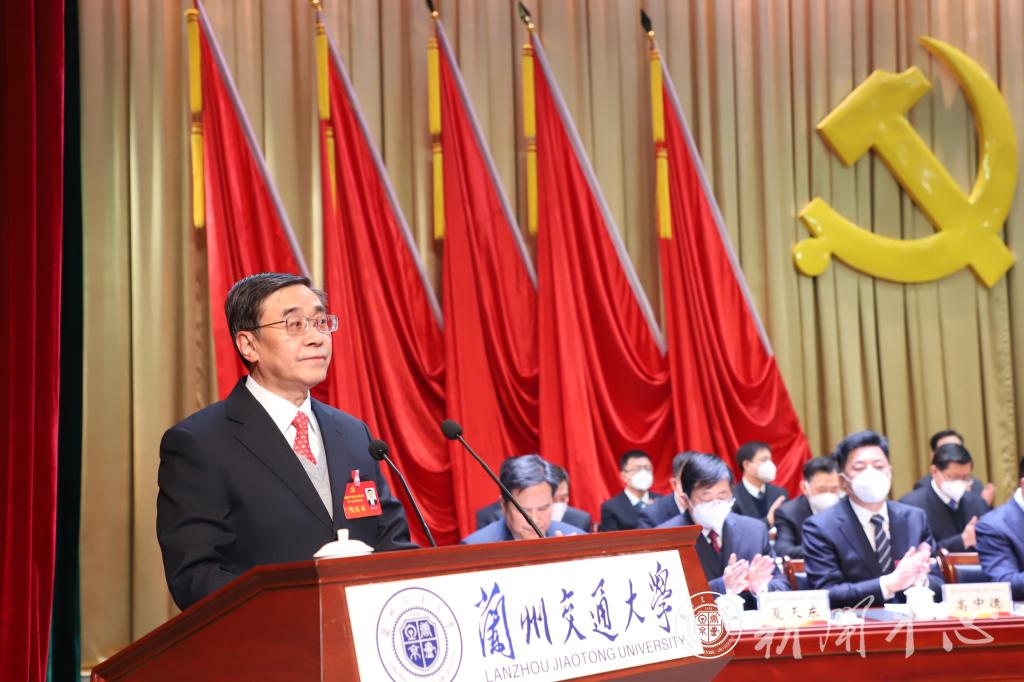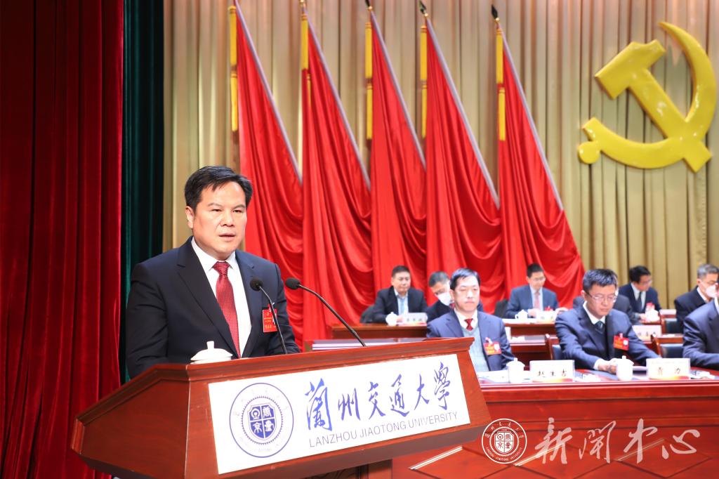 狄生奎同志代表中国共产党兰州交通大学第十一届委员会向大会作《牢记初心使命 坚持改革创新 努力建设区域优势突出行业特色鲜明的高水平大学》报告。范爱国同志代表中国共产党兰州交通大学第十一届纪律检查委员会作书面工作报告。