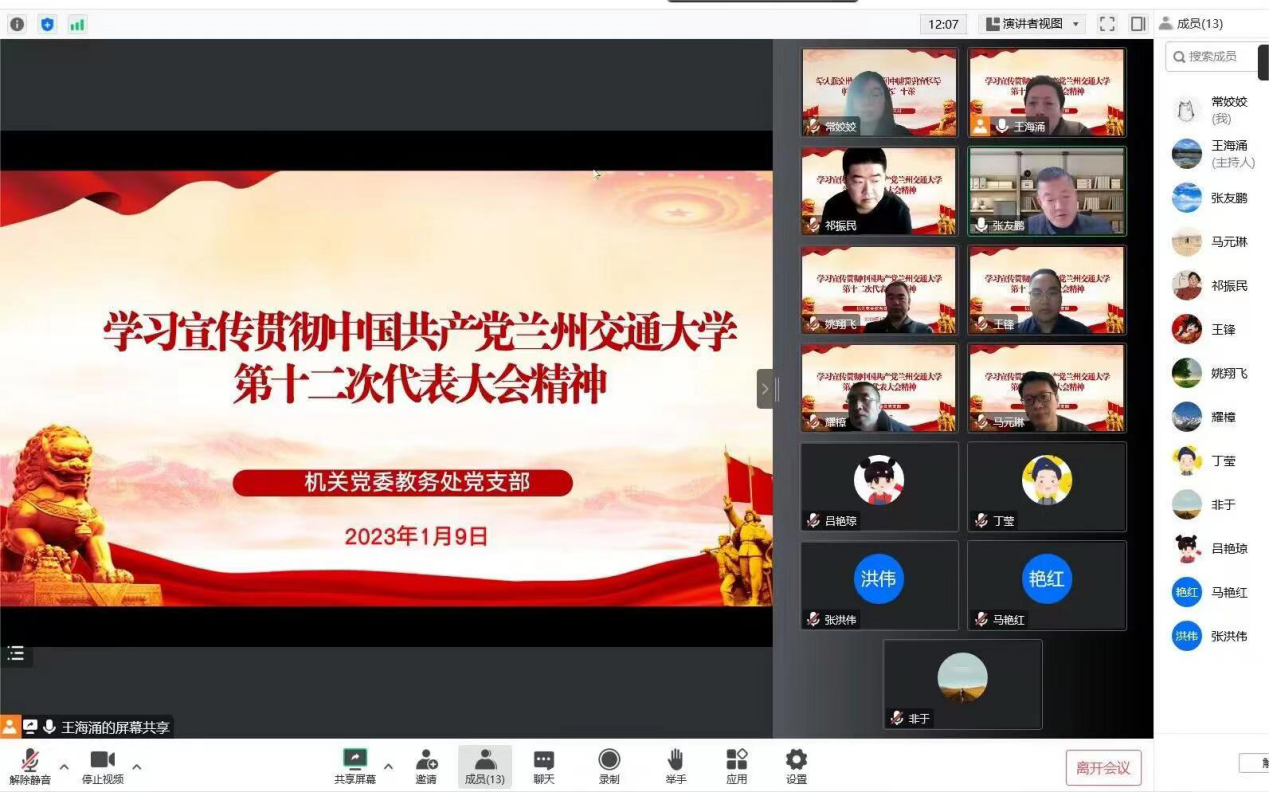 中国共产党兰州交通大学第十二次代表大会于2023年1月6日胜利闭幕。学校各单位通过集体学习、专题研讨、座谈交流等形式,充分利用线上线下平台,学习贯彻落实党代会精神,进一步凝聚思想共识,激发奋进力量。