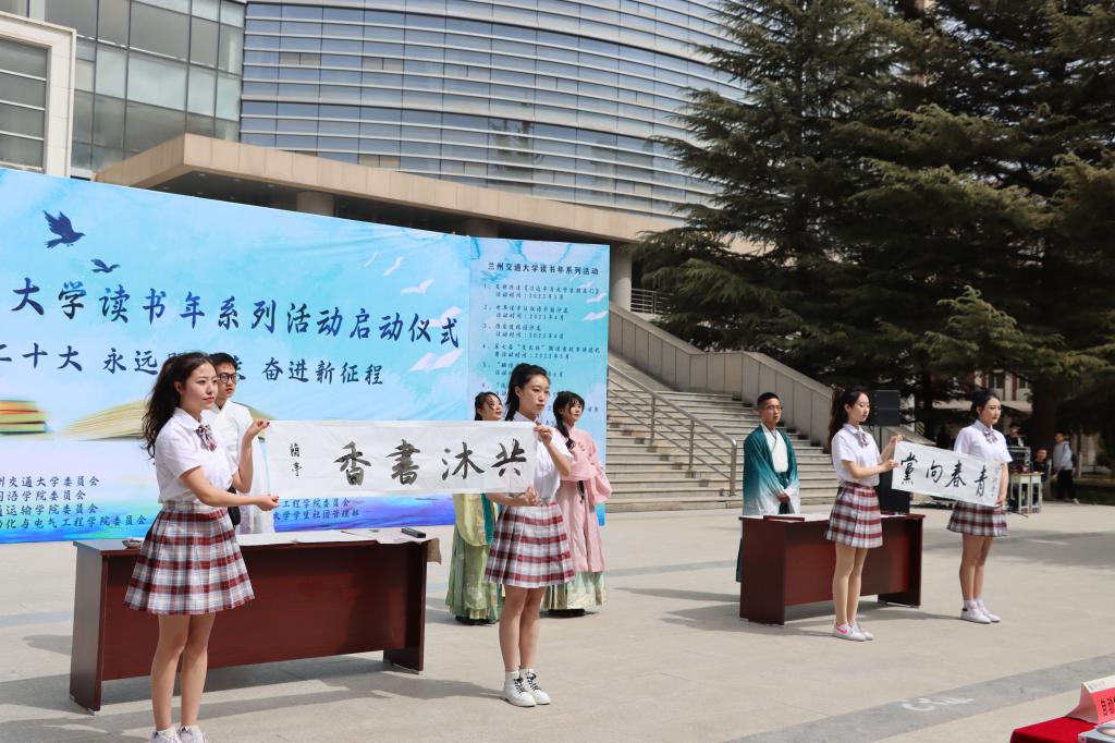 校团委相关负责人宣读了读书年系列活动实施方案。大学生艺术团和学生社团带来了朗诵《青春向党》和书法展示《共沐书香》。