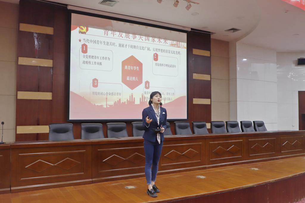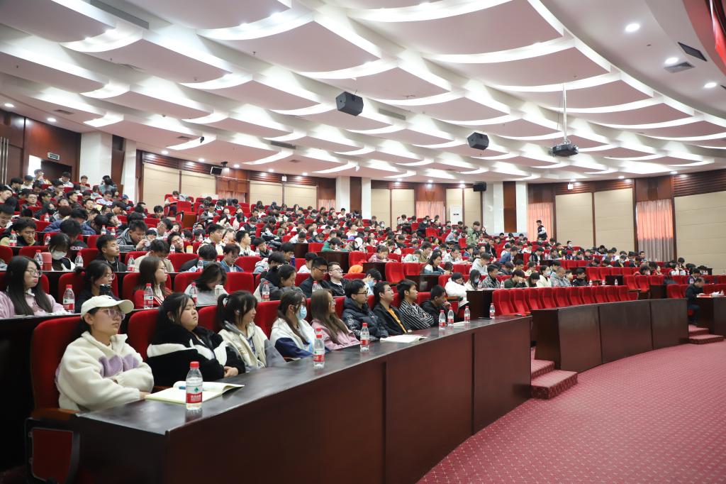 4月6日下午,在学校尚德楼三楼大报告厅,“逐梦新征程 奋斗创未来”全省高校学习贯彻党的二十大暨全国两会精神巡讲省级示范活动第五巡讲团成员为300多名“青马工程宣讲团”成员和团学干部进行理论宣讲。
