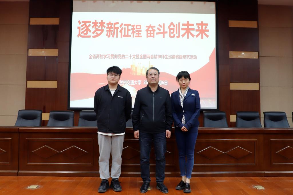 为了深入学习宣传贯彻党的二十大精神和全国两会精神,省委教育工委根据省委宣传部和教育部思政司关于开展学习宣传贯彻党的二十大精神和全国两会精神基层宣讲、师生巡讲活动的有关部署要求,依托兰州大学、西北民族大学、西北师范大学、兰州交通大学、兰州理工大学五所首批重点马院建设高校,组建师生巡讲团,开展巡讲示范活动。由我校马克思主义学院苏星鸿教授、经济管理学院林安秀老师和化学化工学院黄子超同学组成的第五巡讲团的首场巡讲在我校开讲。