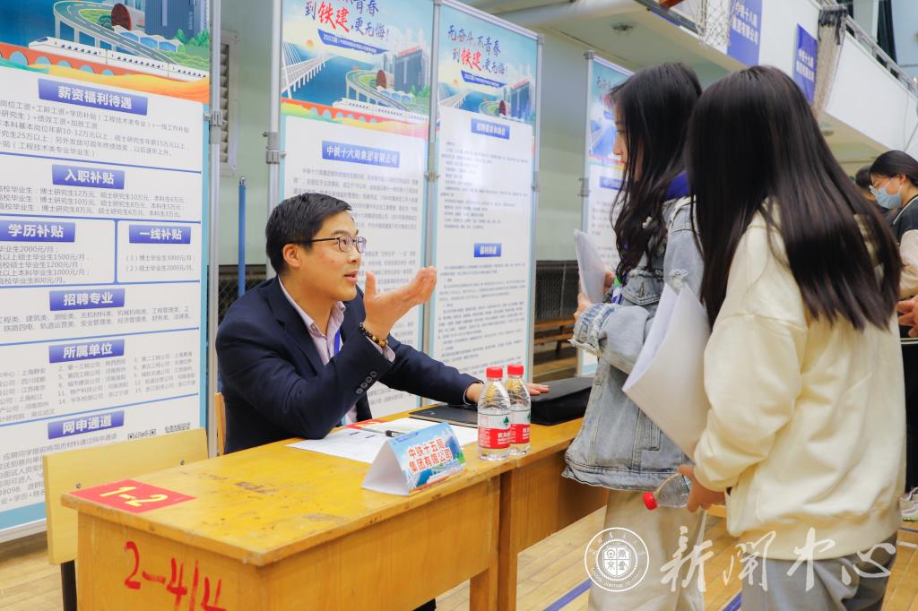 自“三抓三促”行动开展以来,学校紧抓春季校园招聘“黄金期”。为不断推动我校毕业生更高质量更充分就业,4月11日,我校在体育馆举行中国铁建——兰州交通大学2023届毕业生校园专场宣讲招聘会。中国铁建党委组织部(人力资源部)人才处处长张瑞全、中国铁建党委组织部(人力资源部)人才处经理张寒携中国铁建所属18家用人单位参与了此次招聘会,我校党委常委、副校长马军党出席宣讲会。