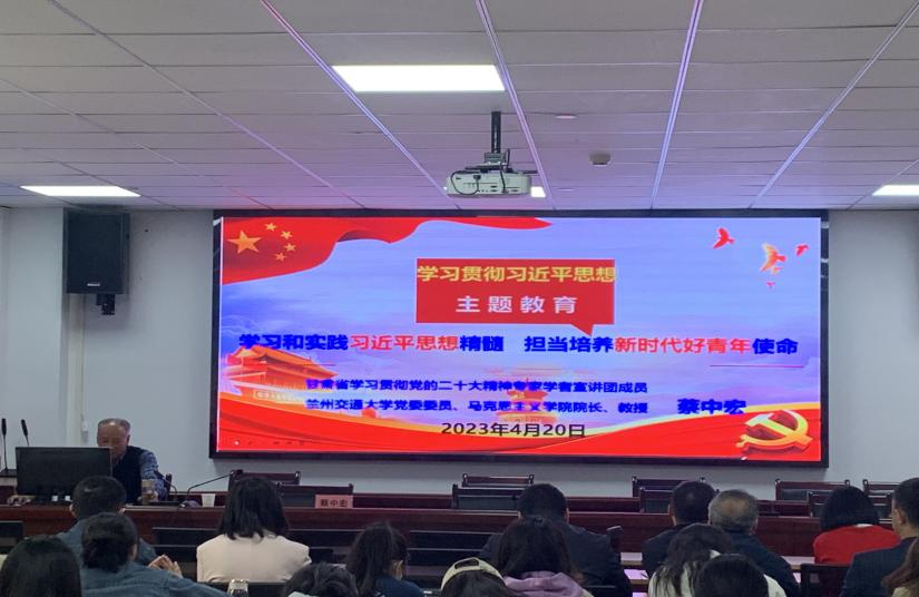 会议结束后,马克思主义学院院长蔡中宏为全院师生作题为“学习和实践习近平思想精髓,担当培养新时代好青年使命”的首场学习辅导报告,从三个方面同大家交流学习了党的二十大精神的认识和体会。他全面解读了党的二十大报告精神,着重阐释了习近平新时代中国特色社会主义思想的世界观和方法论,强调要深刻认识“六个必须坚持”是习近平新时代中国特色社会主义思想的哲学基础和思想精髓,是马克思主义世界观和方法论中国化时代化的最新表达。最后,他结合高校工作实际,从国家、学校和学院三个层面论述了实施科教兴国战略,强化现代化建设人才支撑的重大意义。勉励大家切实担当培养新时代好青年使命任务。