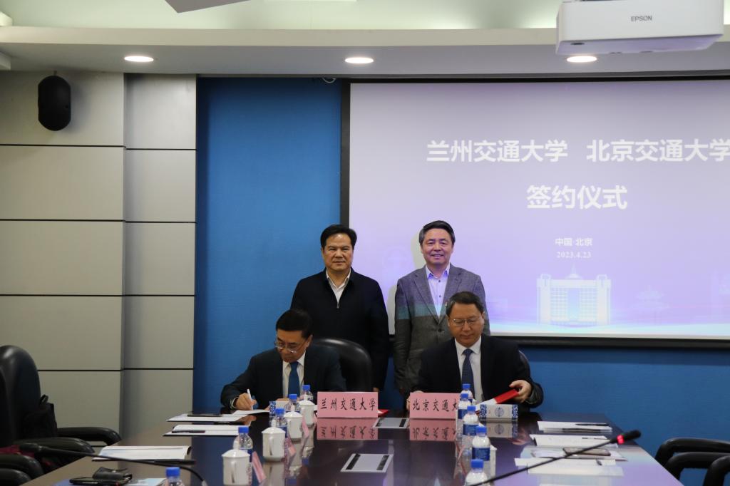 4月23日上午,北京交通大学与兰州交通大学在北京交通大学思源楼签订对口支援协议。北京交通大学党委书记王稼琼、校长余祖俊、副校长高艳,我校党委书记狄生奎、校长李引珍、副校长党建武、副校长苏程出席。签约仪式由余祖俊主持。