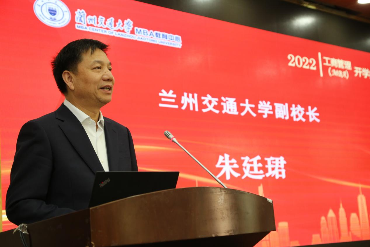 典礼最后,朱廷珺作了饱含深情、充满热情的讲话。他首先代表学校向2022级全体MBA学员表示热烈的欢迎。朱廷珺指出,学校办学65年来,始终与祖国同频共振,保持着“为国育才”的鲜明底色,服务国家、服务轨道交通、服务地方经济发展,为祖国培育了二十余万名优秀人才,MBA学员作为这些优秀人才的一部分,在祖国建设的征程中都做出了应有的贡献,学校为之欣慰。近年来,学校高度重视专业学位的发展,兰州交通大学MBA已经成为我校办学规模最大、特色特点显著的专业学位。希望学员们在MBA学习中认识历史与未来的关系,中国与世界的关系,立足新发展阶段、贯彻新发展理念、构建新发展格局,能够在中华民族伟大复兴的战略全局中贡献自己的力量。