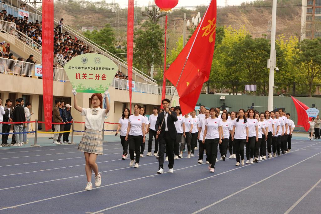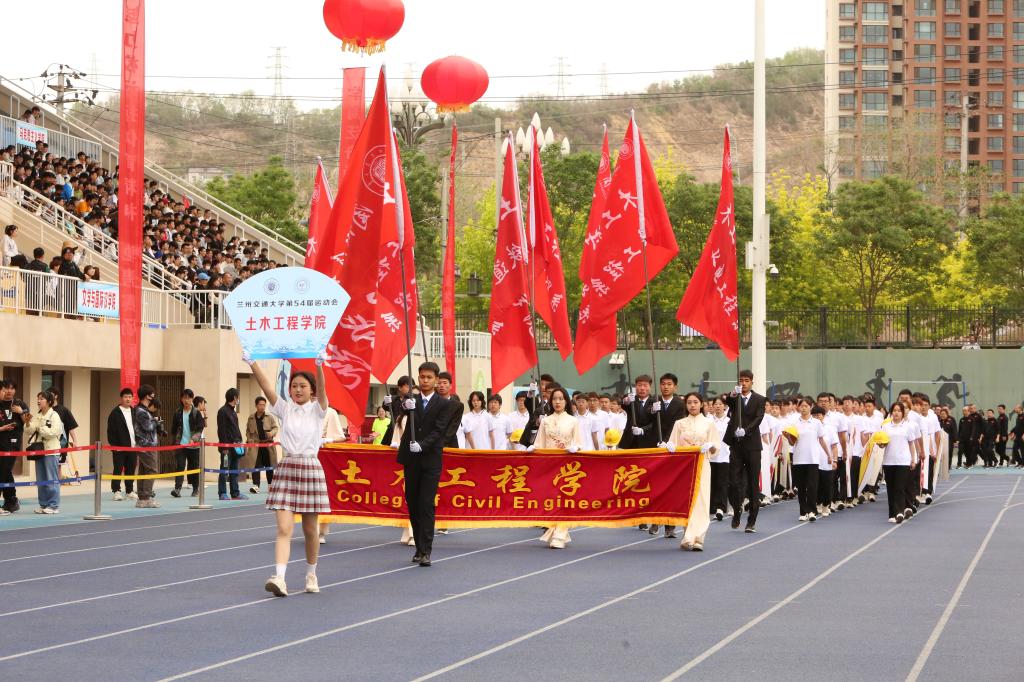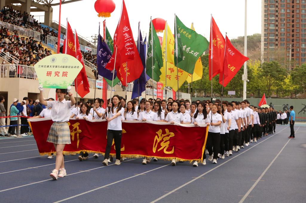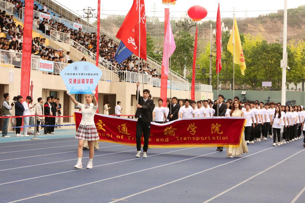 入场人员精神抖擞、步伐整齐、口号嘹亮,赢得在场观众阵阵掌声与喝彩。各学院入场队伍结合自身专业特色,创意编排的方阵风采展示,为入场环节带来了精彩的瞬间。青春洋溢的笑脸、迎风飞舞的彩旗、鲜艳夺目的花束,彰显出兰州交大人自信豪迈、朝气蓬勃的精神面貌和奋发有为的青春风采。