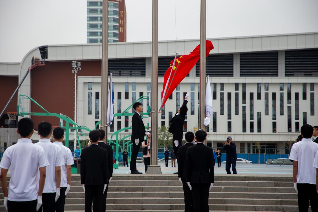 入场仪式结束后,举行了庄重的升国旗仪式。全体师生面向国旗肃立,奏唱国歌,注视着五星红旗在运动场上空冉冉升起。