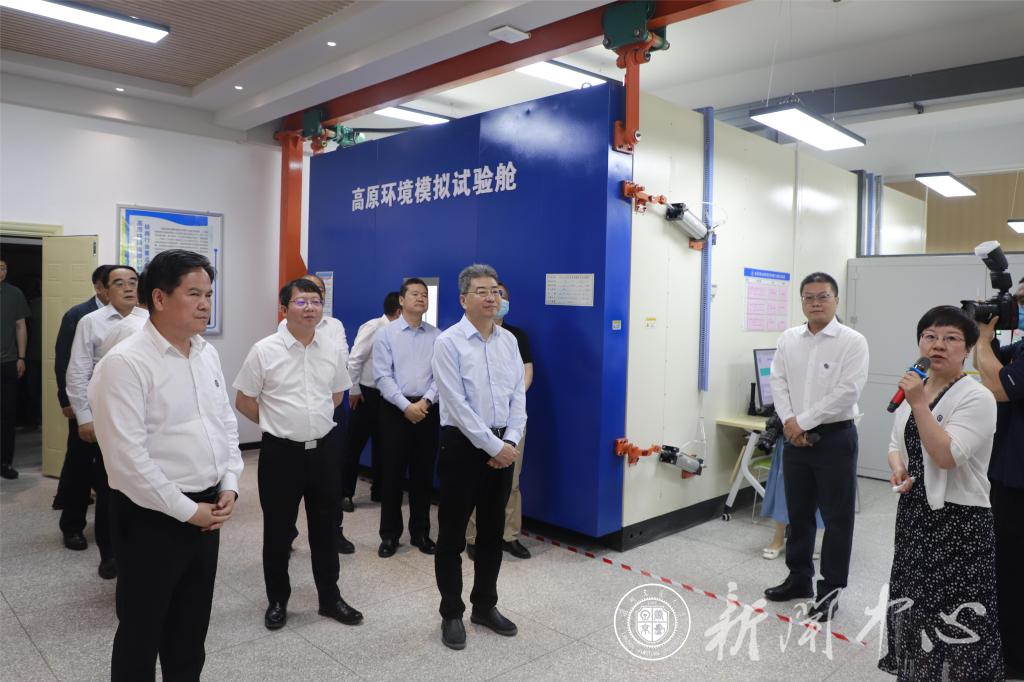 在交通运输学院,吴岩调研指导“高原铁路运输智慧管控铁路行业重点实验室高低温低压环境模拟实验平台”建设情况,听取学校参与的国家重点研发计划项目工作进展汇报。实验平台通过科学试验揭示高原地区运输环境与运输组织、载运器具、货物状态、基础设施之间的耦合关系,致力于打造高原复杂气候环境下“铁路运输+人工智能”的创新性基础理论与应用研究新高地,实验室获得的原创性成果将为高原地区复杂的气候环境下铁路运输保驾护航,为我校交通运输工程学科早日进入一流学科贡献力量。吴岩对学校立足国家战略需求、瞄准科学前沿开展的探索给予了积极的评价。