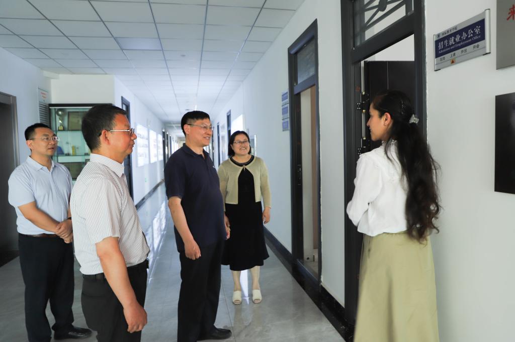 6月19日下午,教育部中外语言交流合作中心党委副书记宋永波、学术组织联络处副处长尹冬民、教学与资源处副处长王维麟及学术组织联络处项目官员万众一行来我校调研国际中文教育及国际中文教师考点相关工作。