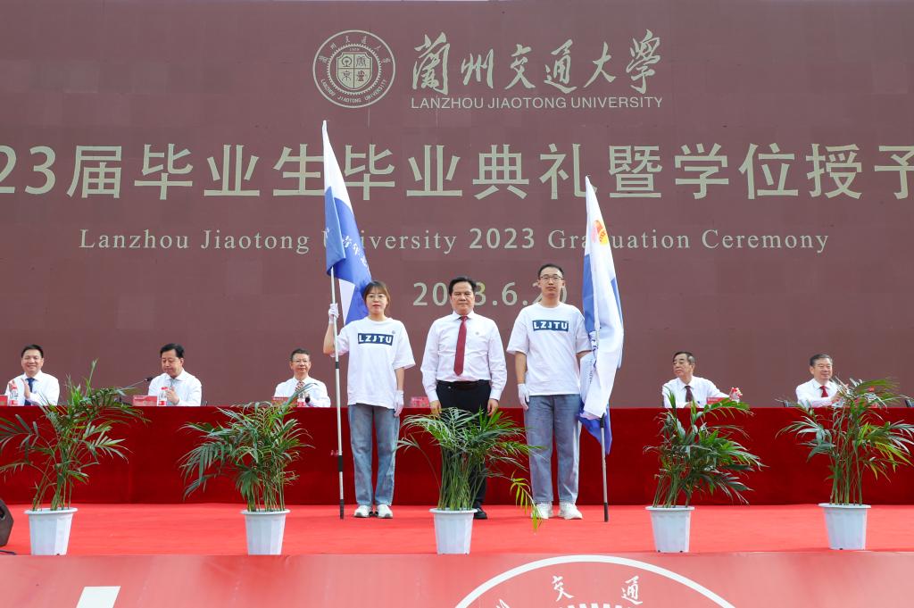 骊歌声声,青春启航。毕业是大学的最后一课,更是人生新的起点,6月20日,兰州交通大学2023届毕业典礼暨学位授予仪式在天佑体育场隆重举行。校长饱含深情的寄语、师长的谆谆教诲、隆重的优秀毕业生表彰仪式、学位授位仪式、为研究生支教团授旗仪式……在这场充满思政元素的毕业典礼上,学校为2023届全体毕业生上了最后一堂“大思政课”,激发毕业生们深怀爱国之心、砥砺报国之志、勇挑强国重任。