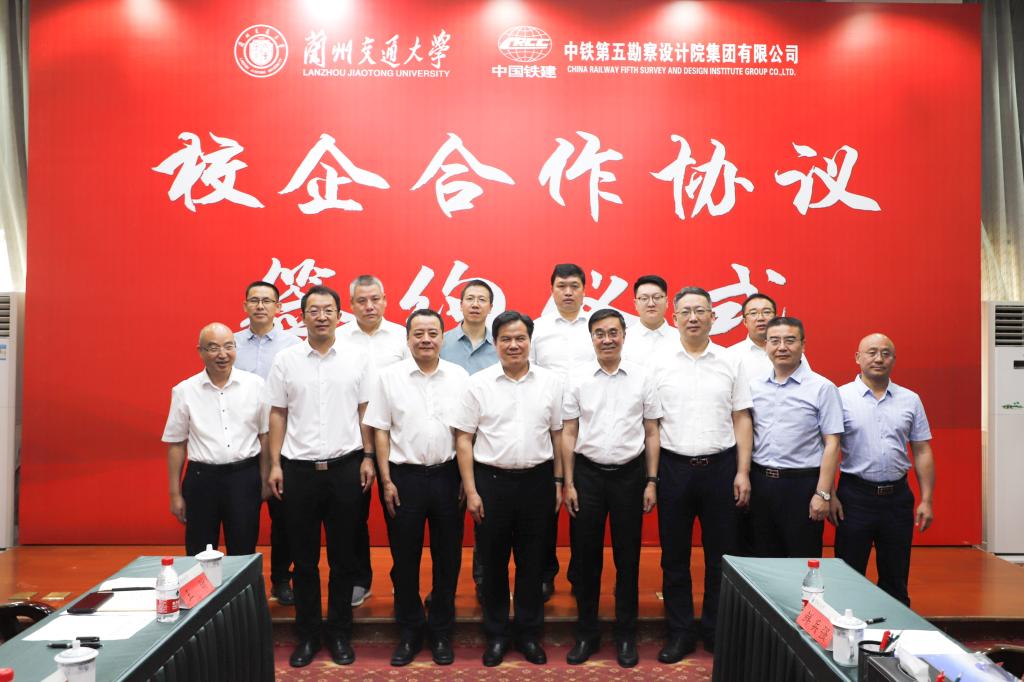 为进一步深化人才培养、科学研究、成果转化交流与合作,更好地服务行业和地方经济建设,7月7日上午,兰州交通大学与中铁第五勘察设计集团有限公司校企合作协议签约仪式,在尚德楼中型报告厅举行。校党委书记狄生奎、校长李引珍、副校长苏程,中铁第五勘察设计院集团有限公司党委书记、董事长陈虎,院长、党委副书记贾筱煜等出席签约仪式。签约仪式由副校长苏程主持。
