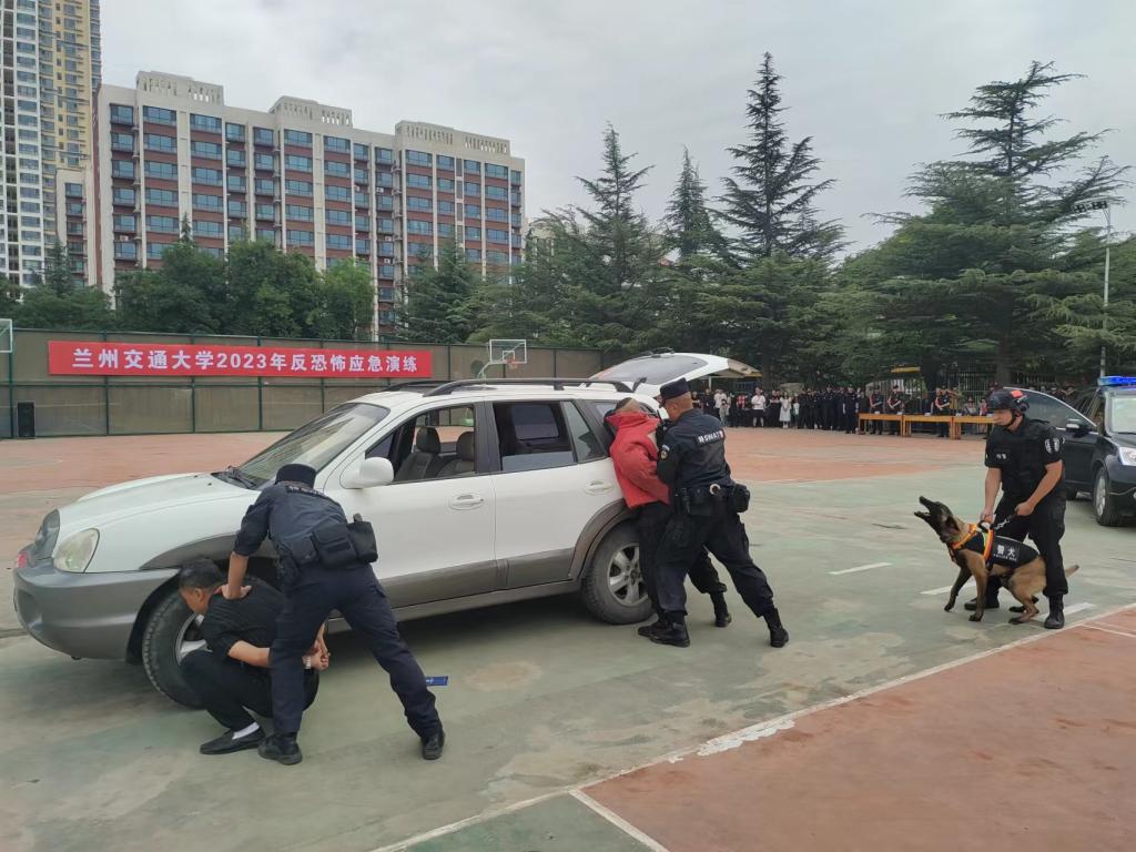 为全面贯彻落实习近平总书记总体国家安全观,进一步提升广大师生的安全防范意识和自我保护能力,逐步健全完善学校反恐怖应急工作机制,7月14日上午,学校联合兰州市公安局安宁分局举办了“兰州交通大学2023年反恐怖应急演练”。部分军训学生、教官及学校相关部门工作人员共计3000余人观摩了演练。