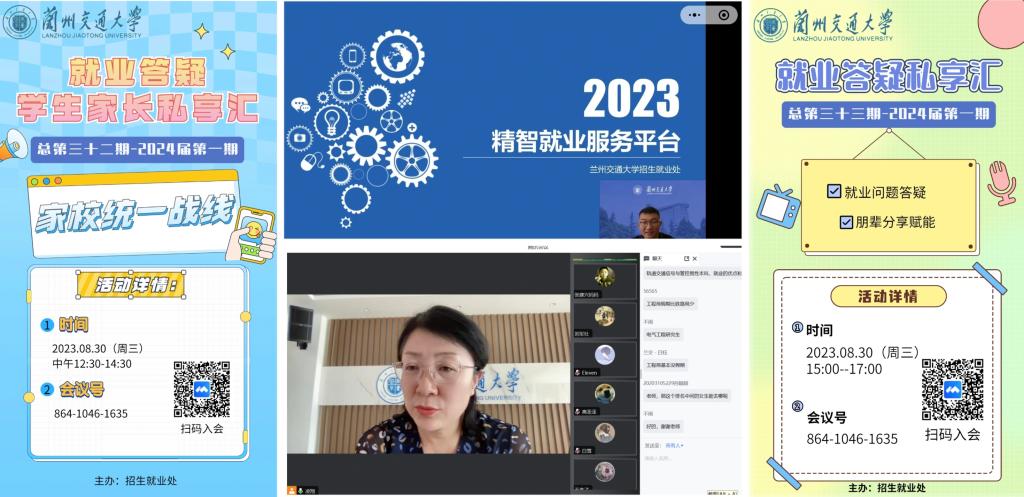 8月29日推出“2024届毕业生就业管理服务系统线上培训(学生版)”,梳理新系统变化,点拨操作要点;8月30日推出“就业答疑学生家长私享汇——家校统一战线”,家校协同共促共育;“就业答疑学生家长私享汇”就业问题答疑,朋辈分享赋能。