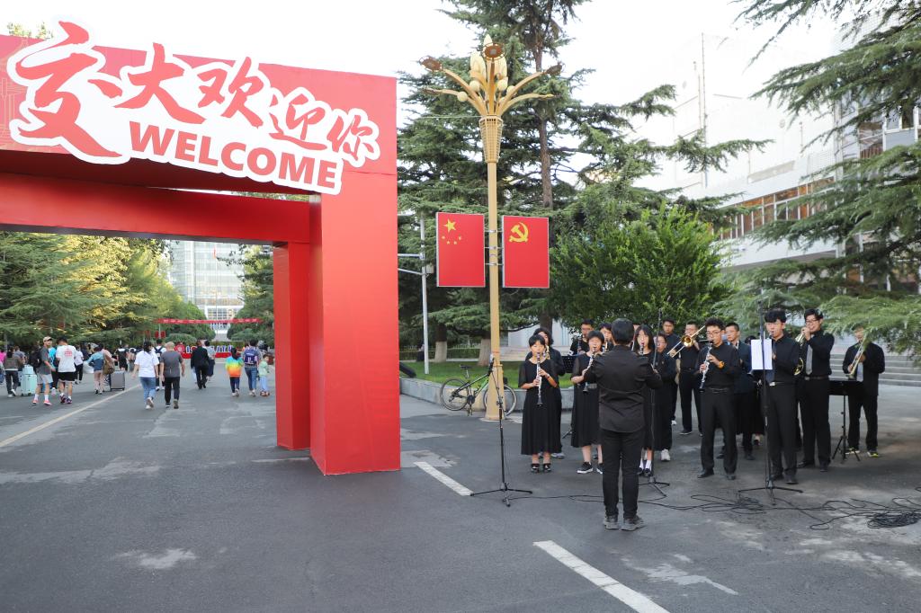 在学长学姐亲切的引领与介绍中,同学们热闹而有序地完成了一系列开学报到手续。在有趣的镂空合影板前“打卡”、欣赏活力满满的迎新乐团演出……各式各样精心设置的迎新活动,令旅途的疲惫一扫而空,笑容洋溢在了每一位新交大人的脸上。