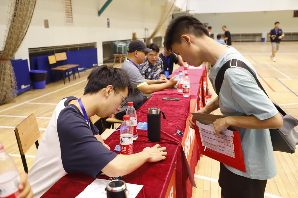 钟楼广场上,人数统计显示屏显示着实时报到人数以及各学院报到比例。各学院办理新生入学手续工作有条不紊地展开,每个学院都精心准备了新生礼包,别出心裁、精心设计各项有趣的迎新活动,用热情与真诚欢迎新生的到来,为新生第一天的交大生活留下美好记忆。