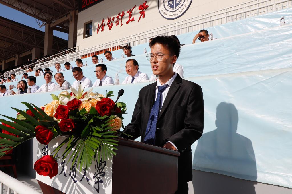 博士研究生新生代表,测绘与地理信息学院杨旺回忆了自己在交大读本科,硕士研究生7年的求学生涯。在他看来,交大的校园,是他快乐的源泉,和谐园的绿荫缤纷,天佑体育场的酣畅淋漓,是他学习之余最舒适的时光。如今再次作为新生,他希望同学们目标明确,锲而不舍,做勤学奋发的孤勇者;独立思考,自主学习,做开拓创新的追梦人;珍惜时光,锐意进取,做不舍寸功的实干家。